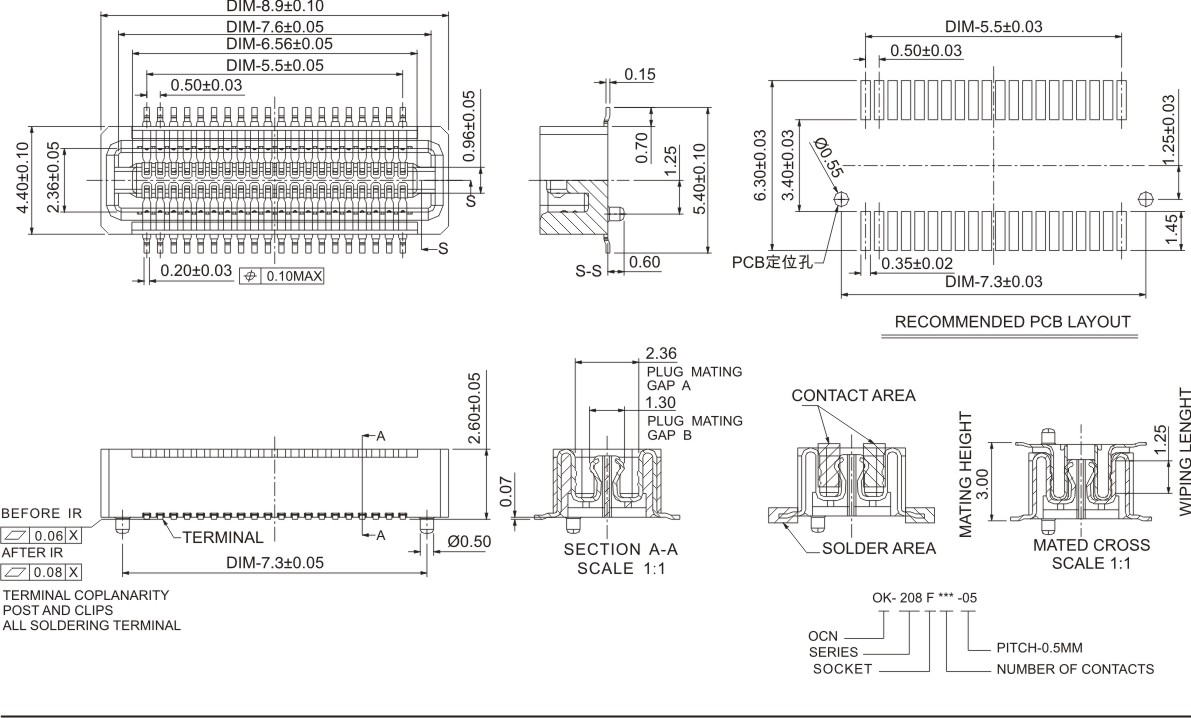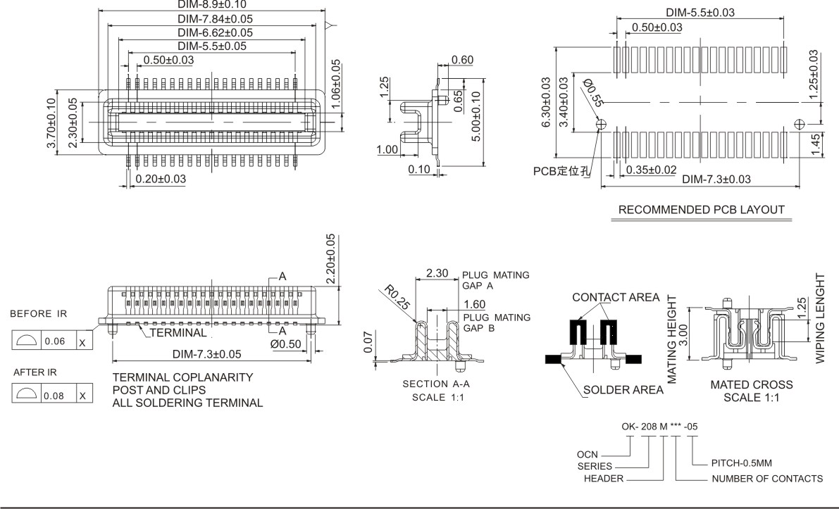 CONTACT AREA: GOLD、SMT LRAD :GOLD、 UNDER PLATNG: NICKEL